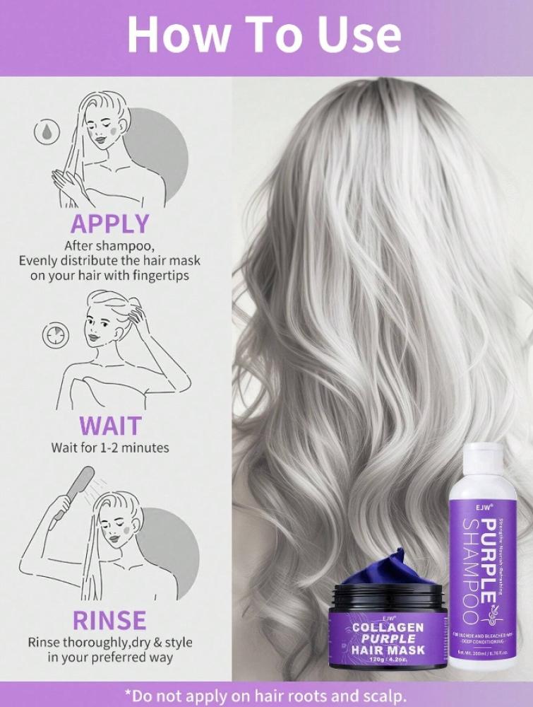 اكتشفي مجموعة العناية بالشعر التي تعزز جمال شعرك وتحافظ على لونه البارد واللامع بفضل تركيبته الفعّالة حيث يعمل على إزالة الأصفرار والتوهج غير المرغوب فيه ليمنحك شعرًا صحيًا وأنيقًا